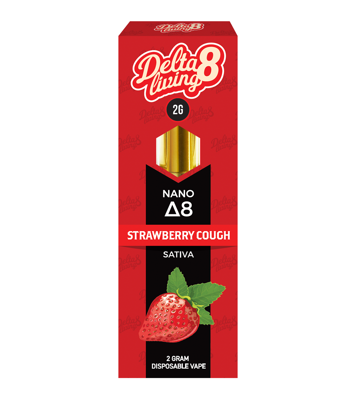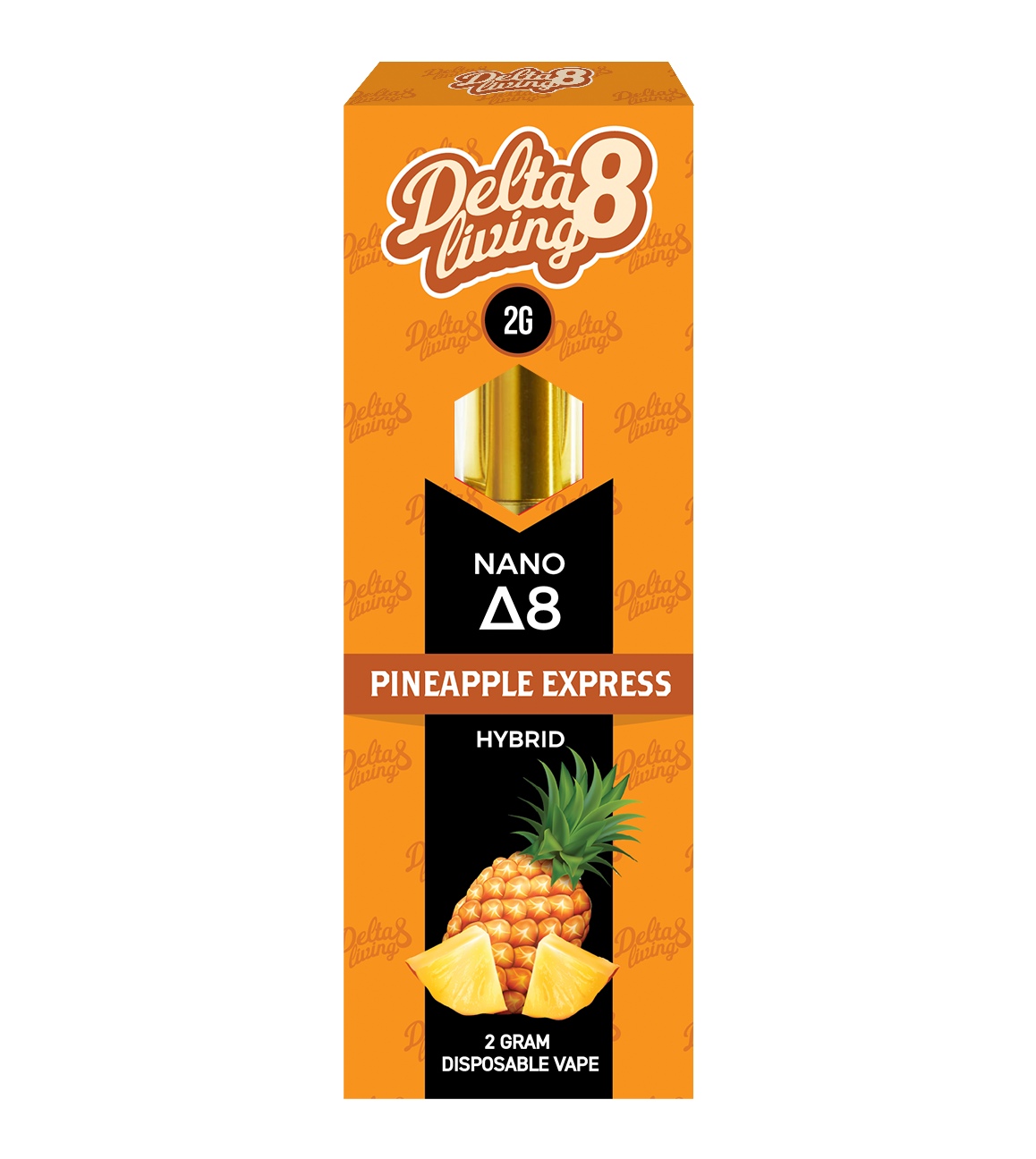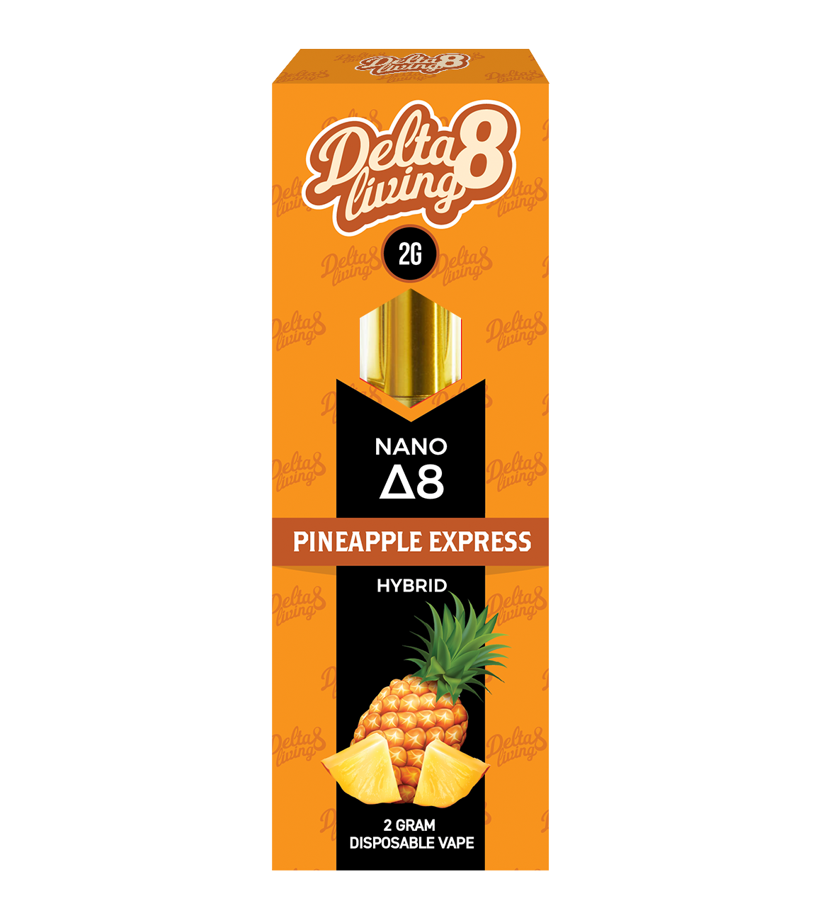 Delta-8 Living Disposable Vapes contain 2 gram of Nano Delta-8 THC from CO2 extracted oil and less than 0.3% Delta-9 THC and are 2018 Farm Bill Compliant. Each vape also contains a full terpene profile and is PG / VG free.