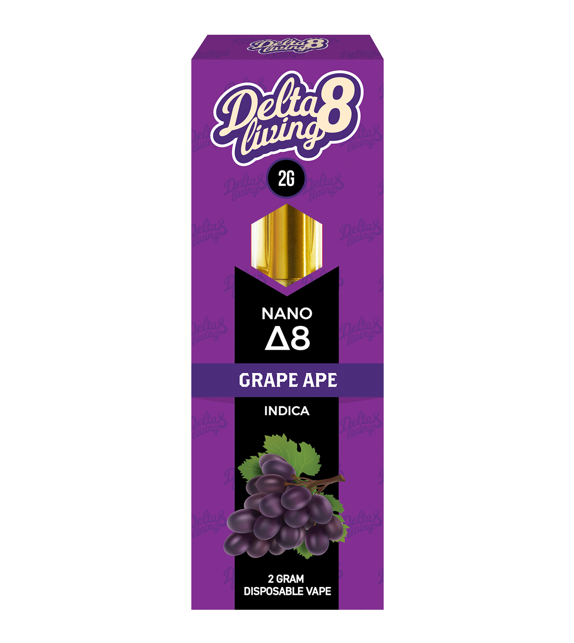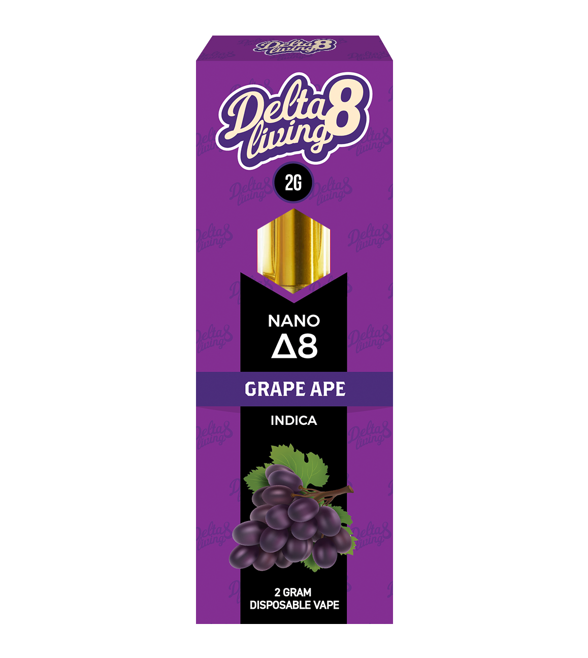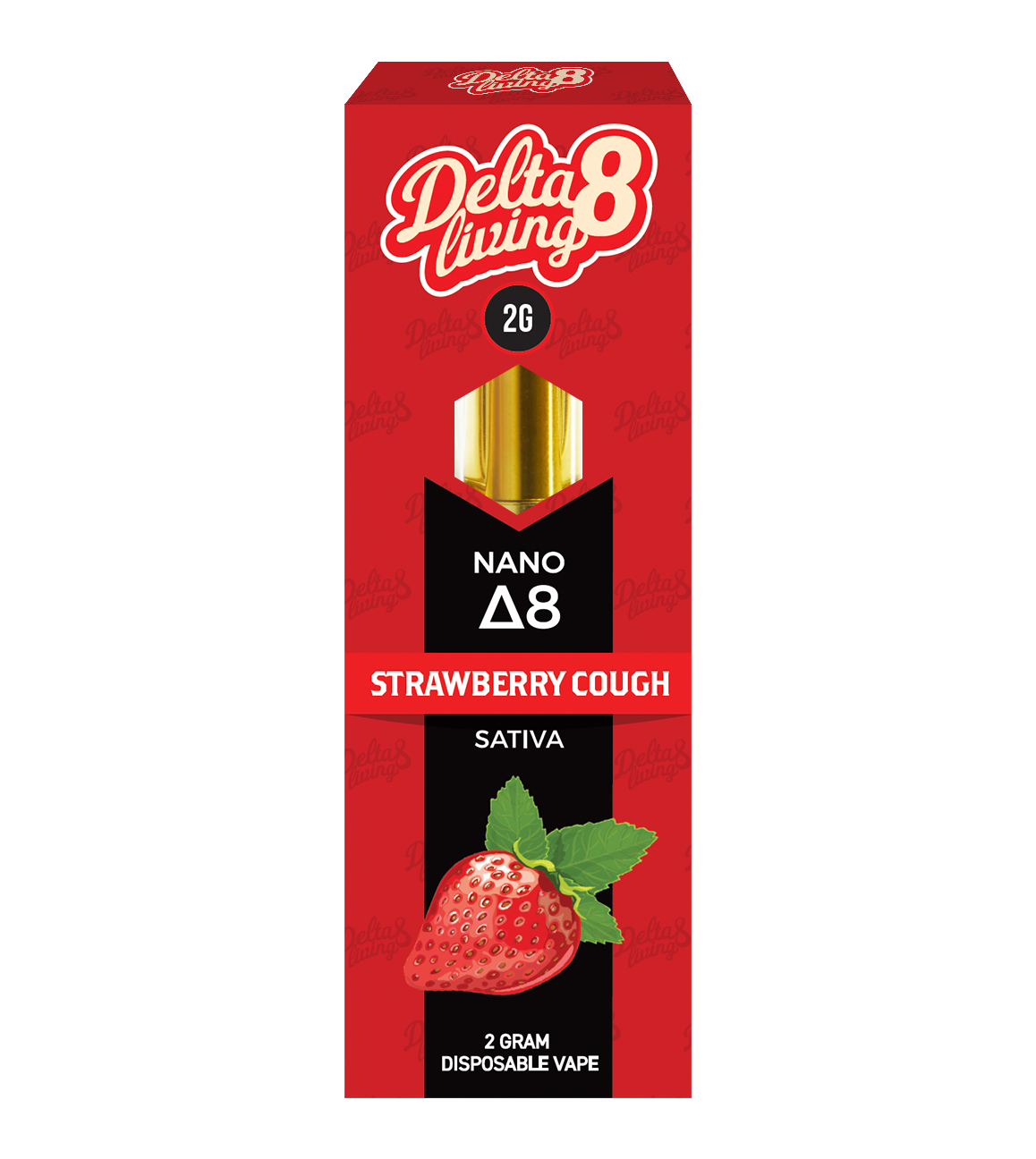 Delta-8 Living Disposable Vapes contain 2 gram of Nano Delta-8 THC from CO2 extracted oil and less than 0.3% Delta-9 THC and are 2018 Farm Bill Compliant. Each vape also contains a full terpene profile and is PG / VG free.